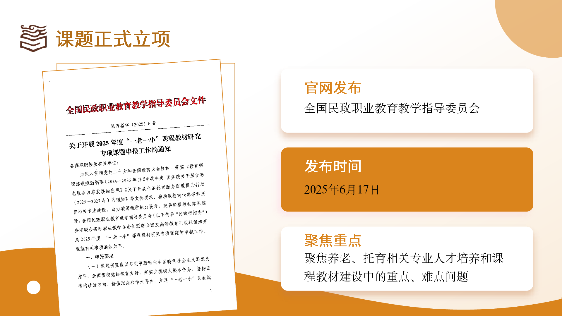 關(guān)于開展2025年度“一老一小”課程教材研究專項課題申報工作的通知