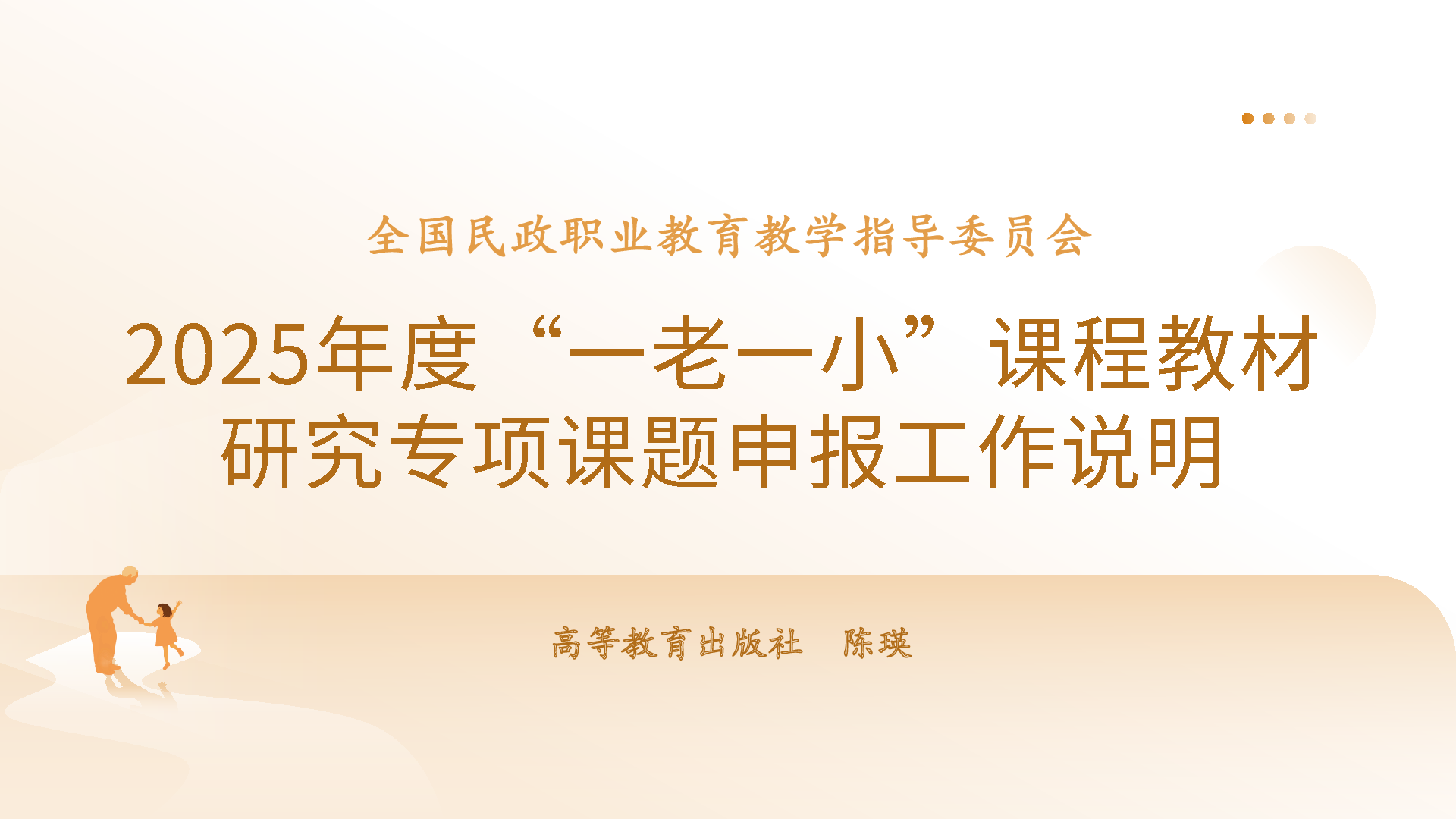 為深入貫徹黨的二十大和全國教育大會精神,落實《教育強國建設(shè)規(guī)劃綱要(2024—2035年)》《中共中央 國務(wù)院關(guān)于深化養(yǎng)老服務(wù)改革發(fā)展的意見》《關(guān)于開展全國托育服務(wù)質(zhì)量提升行動(2025—2027年)的通知》等文件要求,推動數(shù)智時代養(yǎng)老和托育相關(guān)專業(yè)建設(shè),助力教師教學(xué)能力提升,完善課程教材體系建設(shè),全國民政職業(yè)教育教學(xué)指導(dǎo)委員會(以下簡稱“民政行指委”)決定聯(lián)合省際職成教學(xué)會會長聯(lián)席會議及高等教育出版社組織開展2025年度 “一老一小”課程教材研究專項課題的申報工作?,F(xiàn)就有關(guān)事項通知如下。
