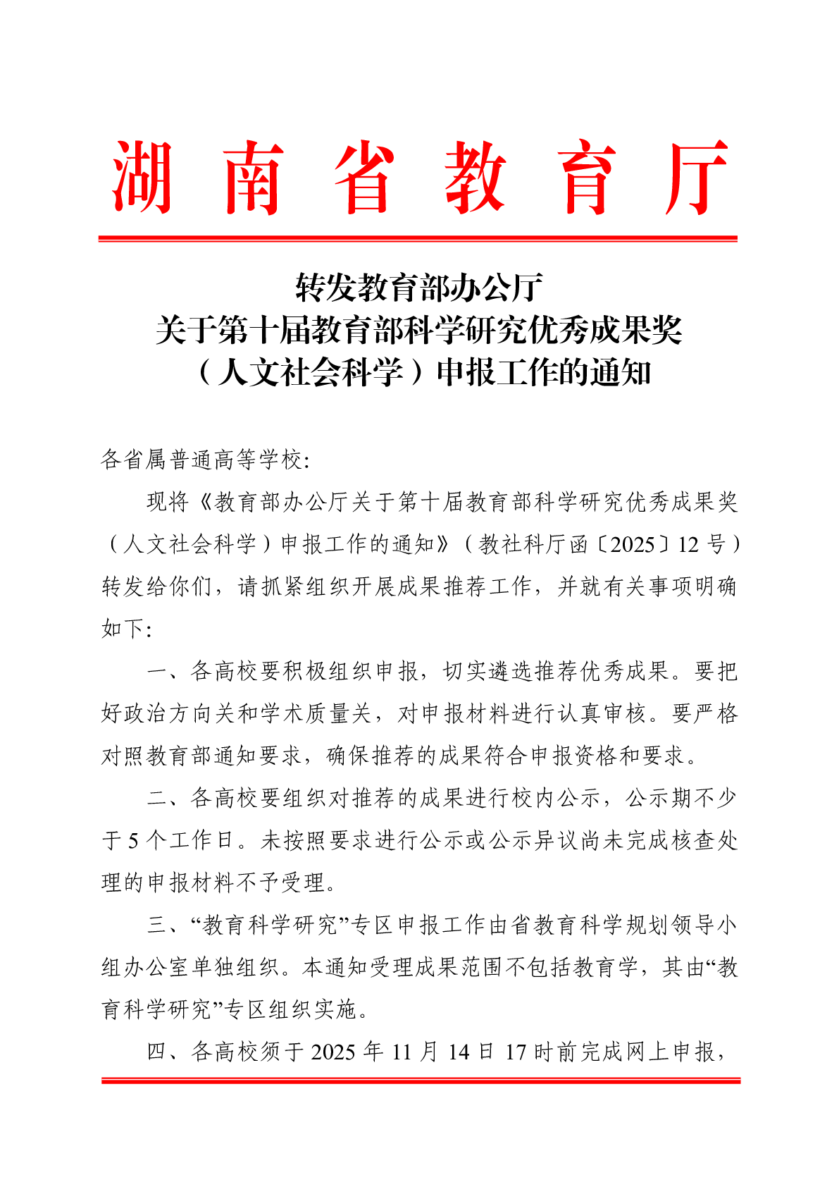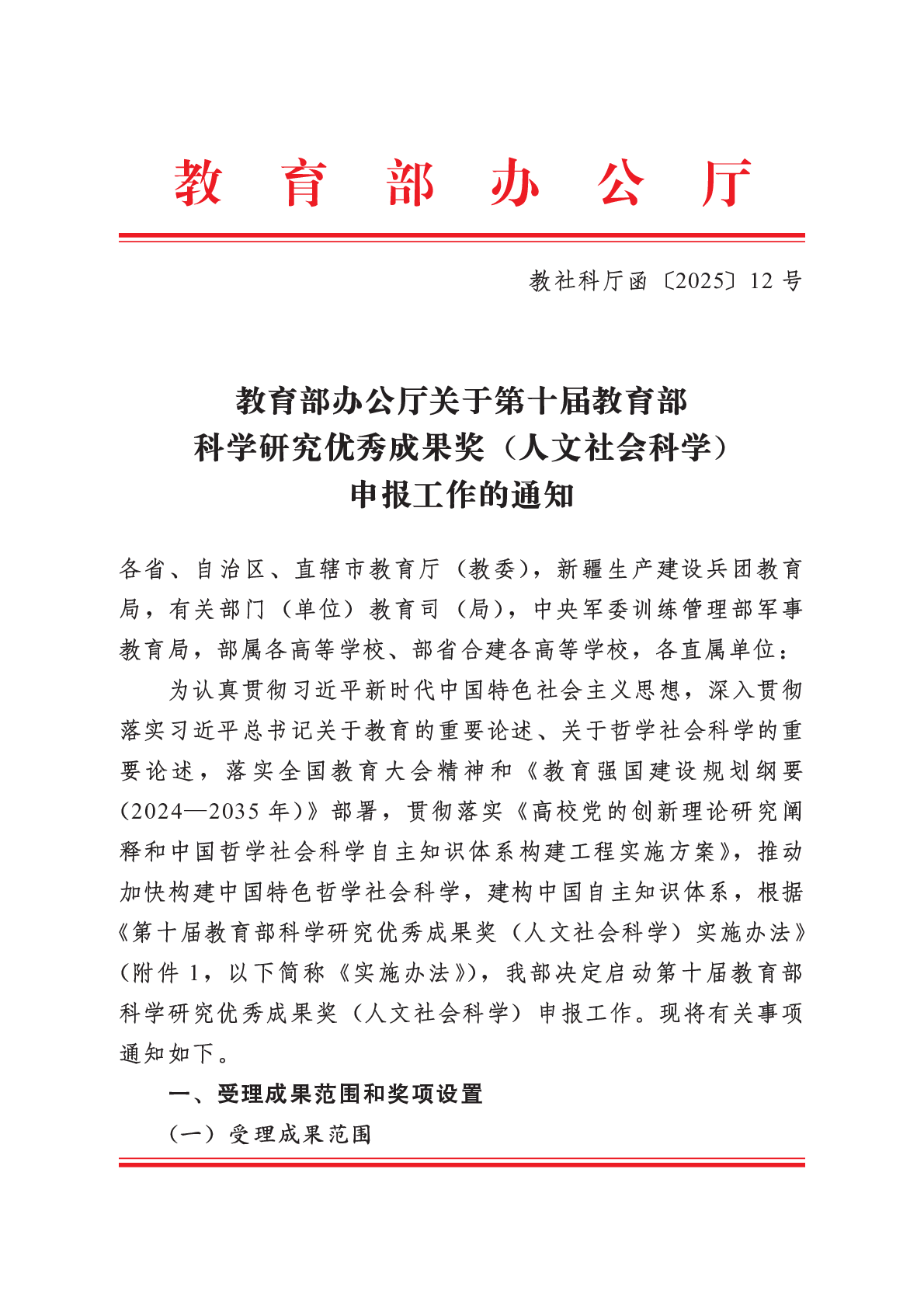 教社科廳函〔2025〕12號 教育部辦公廳關(guān)于第十屆教育部科學研究優(yōu)秀成果獎(人文社會科學)申報工作的通知.pdf