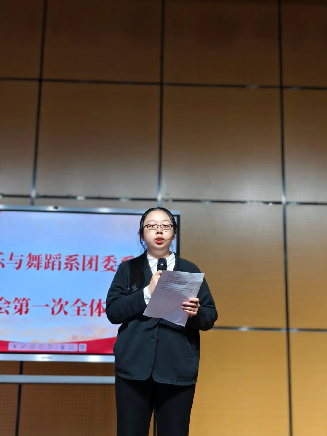 根據(jù)會(huì)議議程,周玉辰老師宣布音樂(lè)與舞蹈系第一屆學(xué)生會(huì)干部名單以及頒布學(xué)生干部聘書(shū),同時(shí)周玉辰老師對(duì)學(xué)生會(huì)構(gòu)成情況進(jìn)行概述和對(duì)學(xué)生們提出希望和鼓勵(lì)。