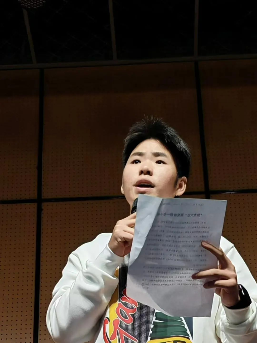 來自音樂表演2201班的演員代表唐晉發(fā)言道:“在本次表演中,他飾演的角色是“賀恕”,此角色在“沙子會(huì)”的基礎(chǔ)上發(fā)起成立了革命團(tuán)體“心社”?!靶纳纭币浴案脑熳约汉透脑焐鐣?huì)”為宗旨,推動(dòng)了新文化,新思想,和馬克思主義在衡陽的傳播。只有讓紅色文化代代相傳,我們才能深知,今天的平凡與幸福是多么的來之不易,是先輩們用怎樣的代價(jià)換來!所以紅色文化的傳承和弘揚(yáng),是我們每個(gè)人的使命與責(zé)任”!